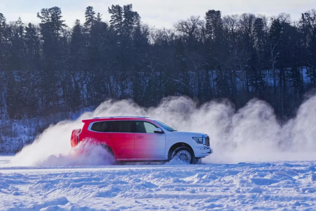 A tecnologia Hi4, integrada aos veículos off-road da GWM, representa o ápice da engenharia automotiva. Seu sistema inteligente de tração híbrida nas quatro rodas opera com um nível de sofisticação impressionante. À medida que os veículos deslizam suavemente sobre as superfícies congeladas, o sistema monitora continuamente cada mínima variação no terreno e nas condições de condução. Em questão de milissegundos, ajusta instantaneamente a distribuição de torque entre os eixos dianteiro e traseiro.